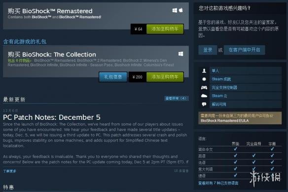《生化奇兵:重制版》和《生化奇兵2:重制版》早已登陆Steam平台,玩家们都希望官方能早日为游戏加入中文支持。今天,Steam上的《生化奇兵:重制版》和《生化奇兵2:重制版》这两款游戏正式宣布加入简体中文!