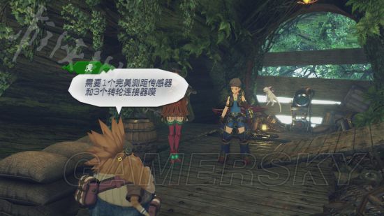 这里可以在商店购买任务所需的三个转轮连接器,但是价格很高,建议通过打捞获得。另一个任务所需的完美测距传感器会在街上碰到以为研究植物学的大叔,他需要我们去到平原下方打败一直怪物获得素材,但是小心周围高等级的怪物,悄悄的过去,当我们收集完一切所需部件就回到小虎家中。果然“人造异刃”启动成功了,最后取名叫“花”。