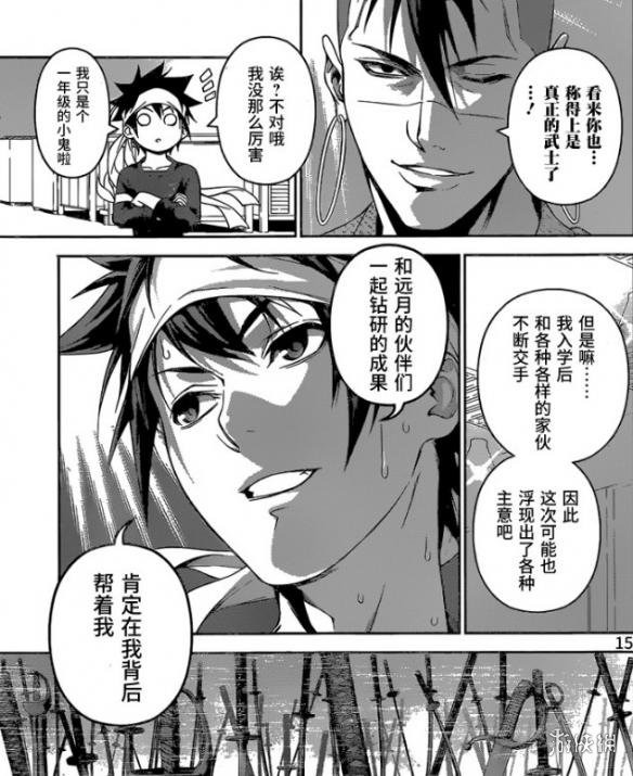 经过思考,创真最终在自己的料理上结合各种元素,将塔克米的奶酪、小惠的苹果黄油、叶山亮的香气奥义、黑木场的虾肉鲜味和悠姬的野味鸡汤等优势全部融会起来,用“无限剑制”的形式打造出与斋藤抗衡的美味。