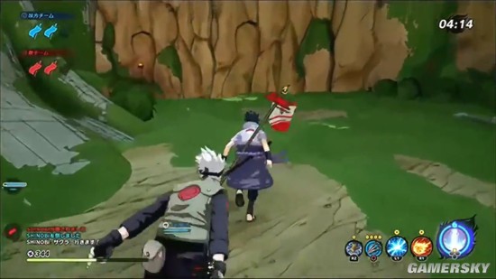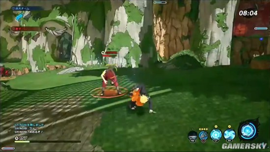 演示展示的是一场多人对战,两支队伍飞天遁地,飞檐走壁,鸣人、佐助等熟悉的角色登场,忍者大战的场面十分炫酷华丽。