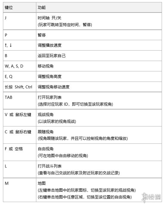 新增角色锁定功能:观战时,按下Ctrl+0~9(打字机键区数字键)即可绑定该角色,按0~9( 打字机键区数字键 )时,将自动跳转到相应角色。