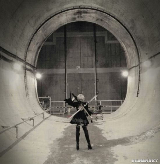 手持白之契约的2B挥剑而出,刀刃仿佛要从照片中划破次元而出,用力到大腿上绷紧的肌肉都清晰可见,力量十足的2B也有着不一样的美感。