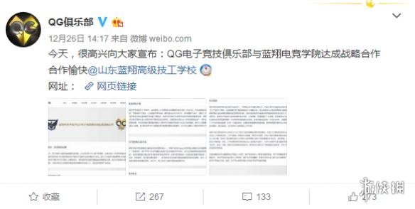 而在今日知名电子竞技俱乐部QG战队也在官方发布消息与蓝翔学校达成战略合作,公告中提到双方合作后将在学院未来学员规模将达到2000人以上,至少开设35个班级。