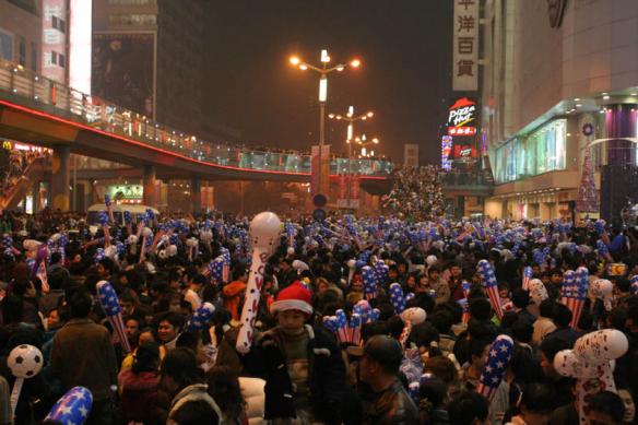七哥的到来更是让原本就围堵街变得更加的拥挤,大量的群众聚集围观,抢七哥在圣诞夜发放的糖果。