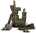 损坏的零碎东西可以在废墟里发现,他的代码是“rubble”,在游戏中可以用控制台DebugSpawn("rubble")刷出。他们可以开采,一般会掉落岩石和石砖,有几率掉落齿轮,噩梦燃料,铥矿,宝石,破烂电线。