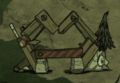 麦斯威尔的蚊子陷阱是一个未实现的项目,它和蜜蜂地雷以同样的方式起作用,但生成的是蚊子而不是蜜蜂,它不能拿起。当玩家或其他生物踩到它时,它会被激活,导致生成蚊子并攻击他们。就像麦斯威尔的犬牙陷阱一样,它只是在冒险模式中出现。其生成的代码是beemine maxwell, 可以用DebugSpawn("beemine maxwell")刷出。