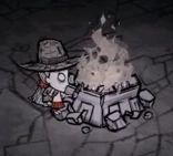熔岩井是一个自然生成对象,在洞穴看起来和影灯完全相同,除了自身是无色的。它可以用DebugSpawn("lavapit")刷出,代码是“lavapit”,但已经被从游戏中移除。当被玩家使用锤子摧毁时,熔岩井会发光并开始慢慢地修复自己。一旦它完全修复了自己,它就不再发光了。