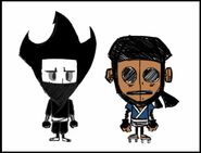 威尔逊的和WX-78的忍者皮肤(可能是参考忍者的标志)。