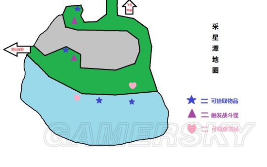 右拐碰到水灵,打死获得河玉带,白玉。河玉带直接装备给夕羽+3防。上面宝箱给白玉。往反方向走下坡,来到采星潭,调查潭水进入剧情。前面水里神秘物品白玉,沿着河边走,发现神秘物品碧玉,前面调查漂流的龟甲,发现奇妙的经历3,上岸往宝箱方向走,遇到4个喽啰,如果是困难模式,上来就要用护援技能免疫伤害。打死后随机得灵魂喽啰(+3闪躲),平疮散。开宝箱得平疮散,进入劳山深处。