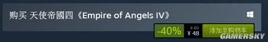 《天使帝国4》WEGAME售价55元,现在优惠促销中,只需45元,Steam上的《天使帝国4》售价80元,现-40%促销价48元,折扣后价格仍略高于WEGAME平台。