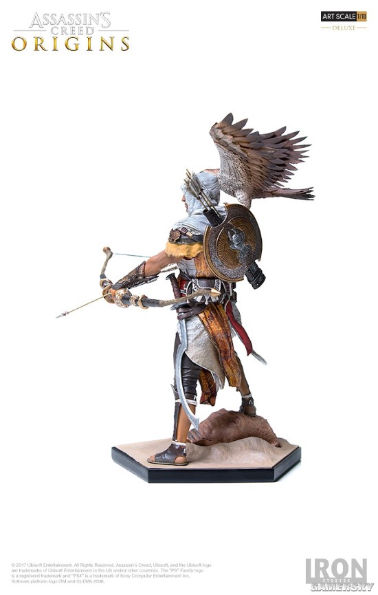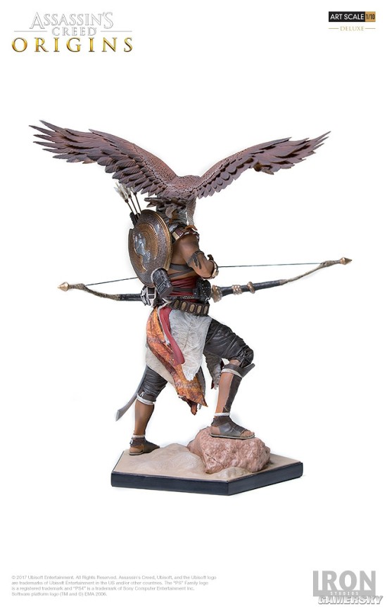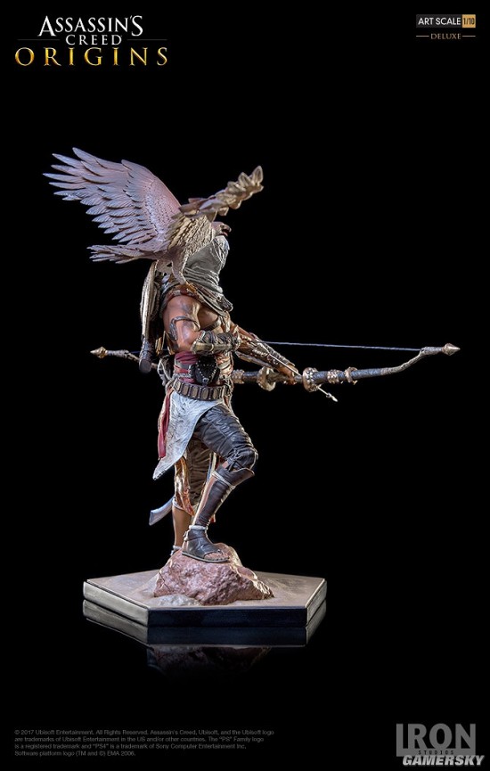 这款育碧官方授权的正品手办由豆鱼雷策划,Iron工作室制作。高约23cm,从官方公布的照片来看,整个手办的细节不错。巴爷拈弓搭箭,而雄鹰则是站在巴爷右肩,振翅高鸣。