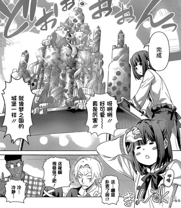 率先完成料理的是茜久保桃,她居然制作了一尊体积庞大的蛋糕城堡?!不过虽然外表看起来非常具有震撼力,但最终的评判依然要以味道为主——抱着这样的想法,评委吃下了第一口,随后他的表情瞬间变得呆滞起来。