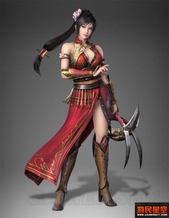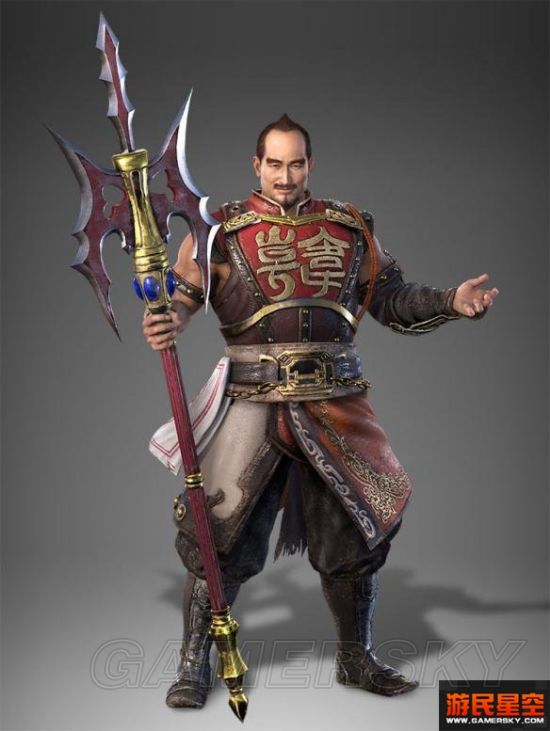 徐盛作为本作中全新的登场的武将关荣不论是人设还是武器方面都算下了一定功夫。高大挺拔的身材在身上的红色“风衣”的加持下更显得孔武有力,而手上的尖锐的武器则又像是逼问着敌人:“你敢动吗?”