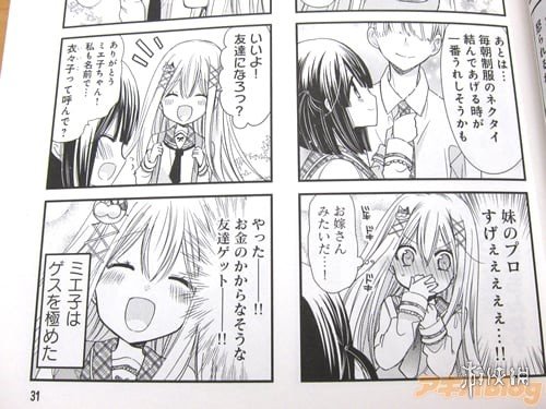 对于雇主只野同学来说,美惠子想要拿到2000日元的时薪需要时刻扮演好“妹妹”的角色,不仅要叫他“欧尼酱”,甚至还提出“只要把发型变成马尾辫再追加10000日元”的绅士要求,以及“忘记带钥匙的迷糊一面”这种奇怪的细节。