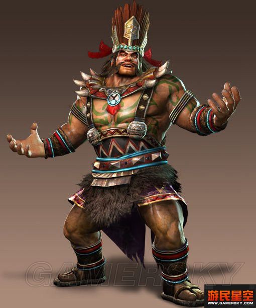 从2代登场开始,孟获都以一个蛮王的形象展现在我们面前。8代中延续了一个形象,虎纹围裙也是力量的象征。