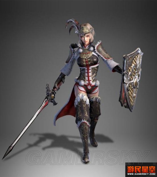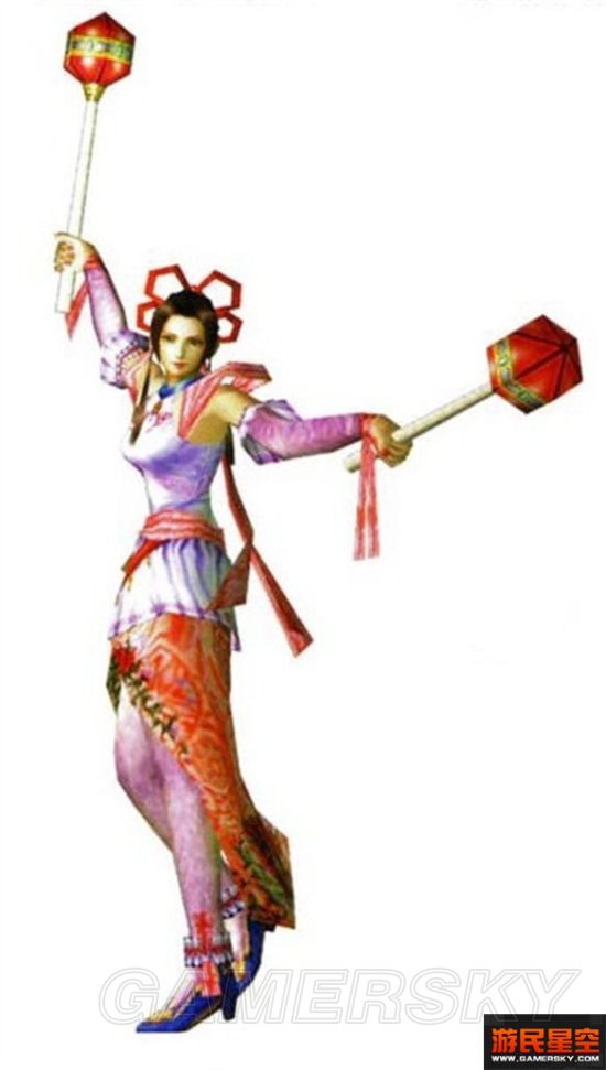 又是光荣通过历史YY出来的人物!初次在上代无双作品中登场。不过与一开始的铁盔银甲相比,8代的吕玲绮多了一些花边装饰,武器也从标志性的戟变成了剑盾。