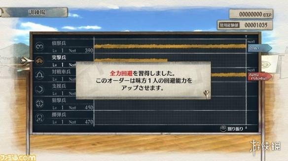成长系统方面,玩家将在训练场接受中尉姐姐的指导,累积经验值提高等级,随着兵种等级的提高,会记住新的指令,觉醒新的战斗潜能,兵种等级总共11级,变成猎兵后,例如侦察兵→侦查猎兵,可以使用新武器等,