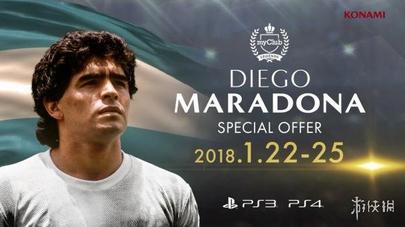 根据预告片显示,马拉多纳将于2018年1月22日至1月25日在PS3和PS4版《实况足球2018》游戏中作为特别内容推出。