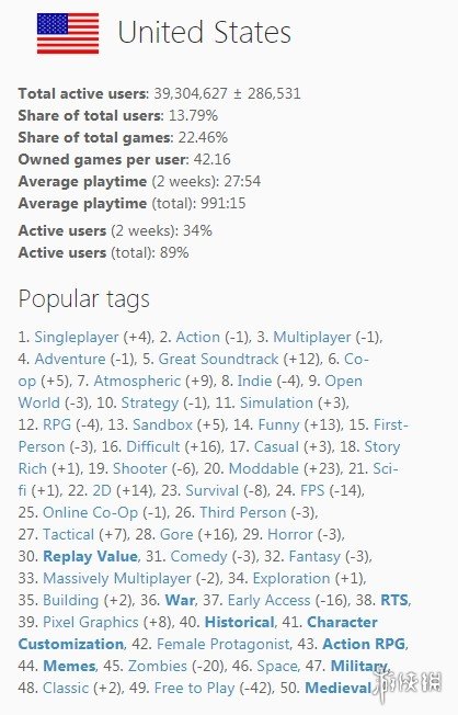 SteamSpy更新了Steam的最新数据,其中显示Steam国区活跃用户已突破4000万,正式超越美国!而上周这个数字还停留在3200万,短短一周内有近800万国内玩家加入了Steam!如此急速的增长令人咂舌。目前显示Steam活跃用户人数国区排名第一,美区第二,俄区依旧第三。