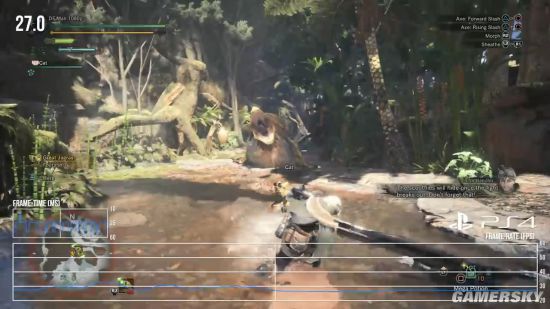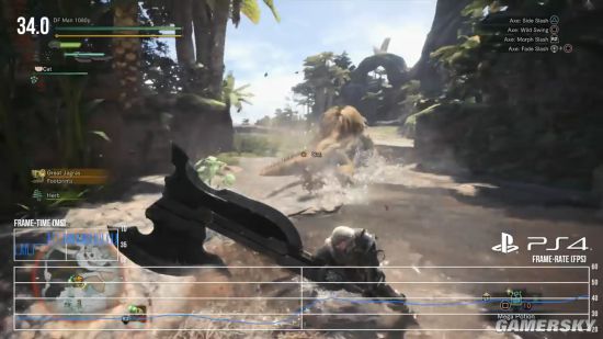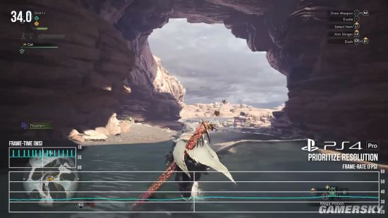 不过对比普通PS4,PS4 Pro的优势并不仅在于画质上,帧数表现也明显更好。在复杂的场景下PS4很容易掉到30帧以下,释放技能和战斗时也同样不稳定。对于一款侧重操作的动作游戏而言,《怪物猎人:世界》在普通PS4上的表现只能说勉强达标,并不能让人满意,或许卡普空在正式版发售后推出补丁稳定游戏的表现。