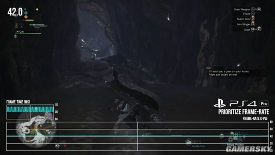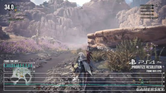 在PS4 Pro上玩家可以选择侧重画面或者侧重流畅度,而视频中显示无论在哪一模式下,游戏在PS4 Pro平台上的帧率都能稳定30帧以上。不过即便是选择高帧率模式,PS4 Pro也无法达到60帧的表现,而且在不同场景下帧率波动幅度也比较明显,所以并不能算相当流畅。