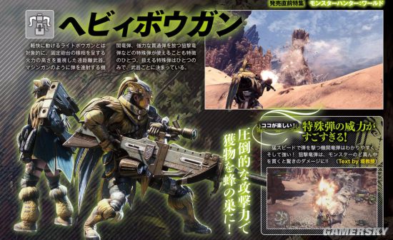 和轻弩不同重弩是一种类似固定炮台重视火力输出的武器。可以使用类似格林机枪般连续扫射的机关龙弹、强力的单发狙击龙弹等特殊弹药是特征之一。特殊弹根据武器的不同而变化,每把武器可以使用的特殊弹只有一种。