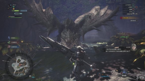 再来说说生态。一张地图中存在多个大型怪物的情况在历代MHW猎人之中都是司空见惯的场景,甚至有些上位任务也会要求玩家在限制时间内讨伐地图上的两头魔物。本作则加入了更多使生态更加丰满的要素。有些大型魔物之间会围绕地盘争夺展开激烈搏杀,而怪物之间造成的伤害十分可观——笔者有一次眼见雄火龙将巨颚龙打倒在地,出现了780的黄色数字。不同的怪物在遭遇其他大型魔物时的表现也截然不同,而诸如雌火龙千里护蛋的生物特有习性一一保留,玩家依然需要充分了解它们,才能在狩猎进行时做到决胜千里。