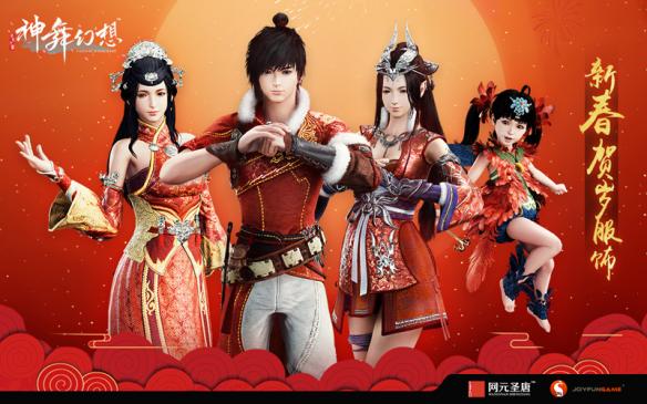 今日《神舞幻想》游戏更新后,玩家可在游戏内获得4款新春贺岁外装,分别对应飞星、望舒、岚湘、夕羽四位主要角色。以吉庆中国红为主色调的全新外装,搭配吉祥富贵的纹饰点缀,在这腊月冬日中驱散了寒冷,也驱散了旧岁的灾厄,将吉祥与如意延续到戊戌新年!