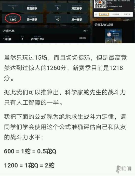 这就真的很皮了,而更灵性的网友还挖出了油管(youtube)上知名虚拟主播“人工智障”爱酱的吃鸡分段,1200分,足有2蛇呢!