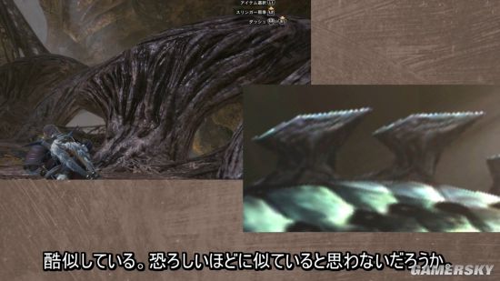 另一方面,该名玩家还指出,在瘴气谷中我们可以看到蛇王龙遗骸的头部,在瘴气谷3区附近你只要抬头就能看见。他还把蛇王龙的头部放进去做了一番比对,该玩家认为两者基本上是一致的。