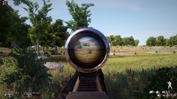 此外,游戏之中的狙击枪可以说极其别致,开镜状态下的画面并不会如其他游戏一般直接全屏幕变成狙击镜画面,而是只有一小截……也让人有些摸不着头脑,讲道理人的眼睛难道就不能凑到瞄准镜上去的吗?比起“拟真”的考虑,我个人感觉这更像是制作组彰显个性和区分标志的一种做法。