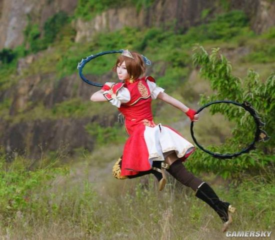 为了表现孙尚香的动感,@motoayus2还晒出了一张跃起的照片,不过COSER本人还是非常追求完美的自己挑出了照片中的不足之处:动感很好,但是脸看起来像狐狸…ww