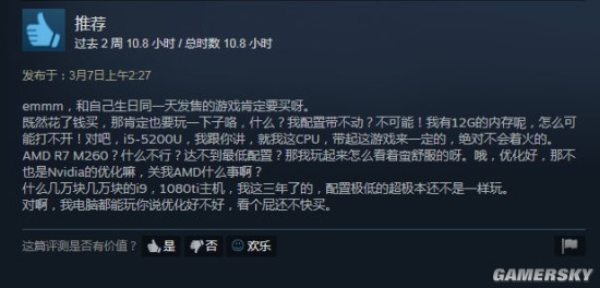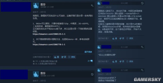 虽然说最开始1080Ti的推荐配置有些吓人(后来推荐配置调整到了1060和AMD RX 480),但是从Steam商店玩家给出的评测来看,游戏的优化很不错。即便没有顶尖的硬件配置,但是降低一些标准畅玩游戏是没有问题的。
