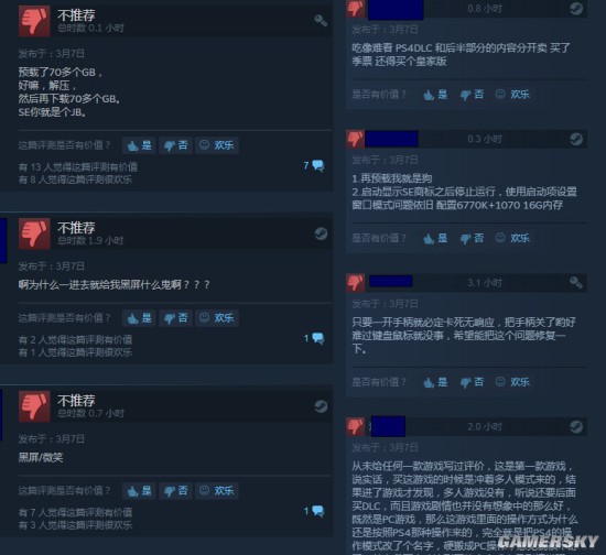 从评测来看,内容集中在:不能存档、黑屏、闪退崩溃等。有玩家甚至表示,自己非正版时没有遇到问题,真的是“正版受害者”。