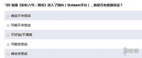 而关于此次调查问卷的目的以及腾讯未来是否将代理《彩虹六号:围攻》,调查问卷中则有一条非常引入注目的问题:如果《彩虹六号:围攻》进入了国内(非steam平台),您是否有意愿尝试?从中可以看出腾讯已经对这款游戏有了很大的兴趣。