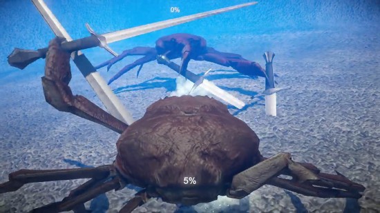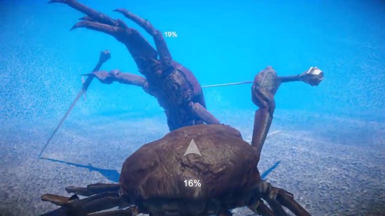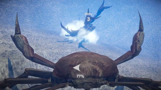 在《战斗螃蟹》中,玩家控制的角色是螃蟹。战斗可以“肉搏”,击打、用蟹钳“剪”、投掷武器等,也可以用蟹钳挥舞冷兵器战斗,还是双持呢。