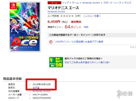 根据页面显示,本作将于2018年6月22日发售,日版售价6458日元(含税)。作为“马里奥网球”系列的最新作,“ACE”在以往基础上增加了瞄准固定位置击打的“狙击”、从远处救球的“加速”以及究极大招“特殊Shot”等全新系统,还增加了一个挥动Joy-Con以体感形式进行游戏的“Swing Mode”,能够挑战各种任务和BOSS的故事模式也是首次出现在该系列游戏中。