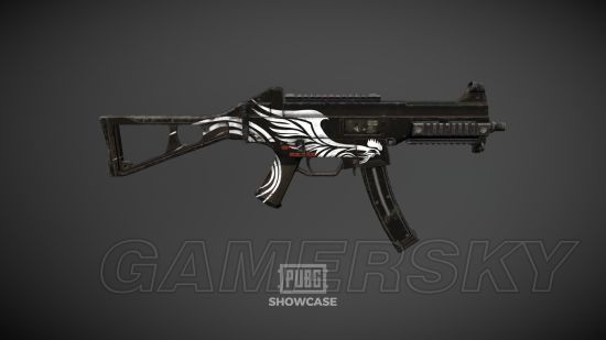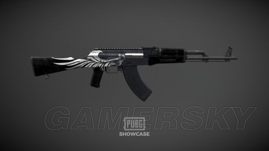 说实话这款皮肤之所以放在最后一个介绍,是因为(那个白色图案如果不是因为皮肤叫glory的话我真的会以为那是野鸡)印有这款皮肤的两把枪——AKM、UMP9,分别是武器皮肤箱子里的红色和粉色(这代表了稀有程度最高的两个等级)。