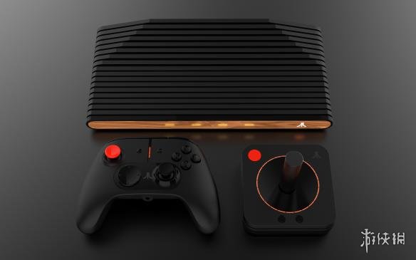 主机的整体设计风格也依旧延续了经典的雅达利2600的设计语言,正面木纹色与上部黑色条状带的结合同时代表着复古与现代,而在控制器方面除了Xbox手柄布局的黑橙色手柄之外还出现了一个与我们阔别多年的摇杆,所以不用想也知道必然会有雅达利经典的《打砖块》《乒乓》等游戏。