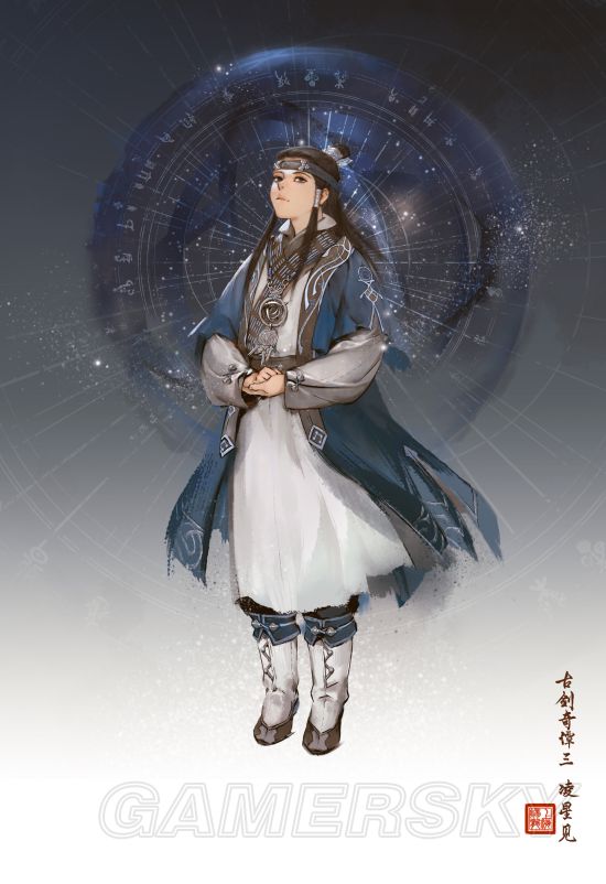 凌星见的外观设定上有明显的道教元素,蓝白的颜色也是吻合星空的静谧。