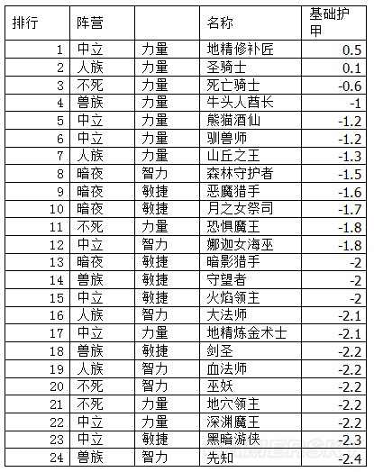 大部分英雄基础护甲都是-2。个别英雄会有出入。具体属性如下: