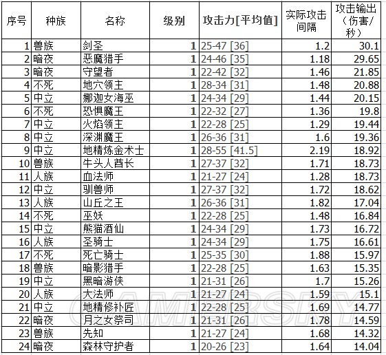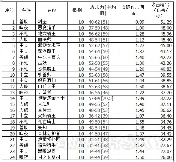 基础攻击力方面,地精炼金术士16.5平均攻击称霸天下,而且相比后面还有不小的差距。但基础攻击间隔是最慢的2.5。好在有个变态的加攻速技能,理论上是有成为超级DPS的可能性的,只是皮薄了点。