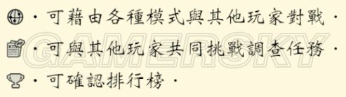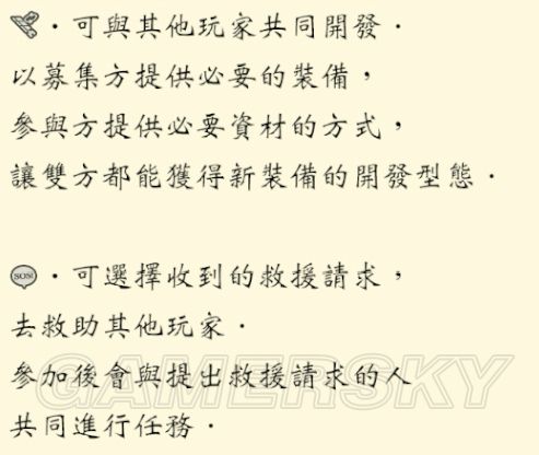 主线剧情任务会在这里逐步展开。随着剧情的推进,各设施、地图、要素也会一一解锁。值得一提的是,之后会开放「过去的任务」NPC,可以从这里接取之前的主线任务,所以如果评价没有S什么的完全不需要担心。中后期的时候在连续任务期间会落脚在临时营地,营地里会有一只索狗(误),可以返回连续任务之前的城镇,如果有好感事件之类的可以在这时候接着进行。领便当的角色会在通关之后于主线任务中搭救而复活(万万没想到……),所以也不需要担心。通关主线大概需要15-20小时。补充一下,主线任务推进过程中在红色叹号NPC附近按L1可以呼叫其他玩家救援。