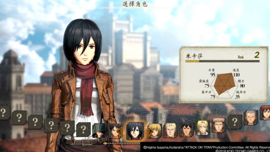 游戏根据同名动画改编而来,在1代中比较忠实地还原了动画第一季的剧情。世界背景是不知道原因突然出现的巨人,虽然没有理智只有捕食人类这唯一的动机,但是在悬殊的战力差之下,人类还是节节败退,最后龟缩在3道高大坚固的城墙围起来的圈子里生活。设定上来说和末日、僵尸之类的差不多少,不过因为战斗剧情和动不动就给(看似)主要的角色送上便当而闻名业界(咦?)。现在因为你懂的原因,已在大陆禁播,想看的同学只能用一些特别的下载技巧尝试补番了。