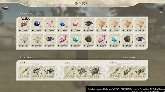 加入调查兵团之后,可以使用兵团系统了。当完成任务、日常生活中扮演模范士兵——看到偷懒的士兵威胁说打小报告,碰到不懂就问的同学准确指导,扶老奶奶过马路(误)的雷锋行为——就可以获得「自由之翼」这么一个有这高大上名字的……货币,好吧,是声望,声望。