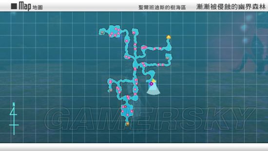 出现地点:幽界森林(到达新绿街道传送点也就是树海区广场下方,按触摸屏右上角圆圈地图进去,再走到下图大圆圈位置)