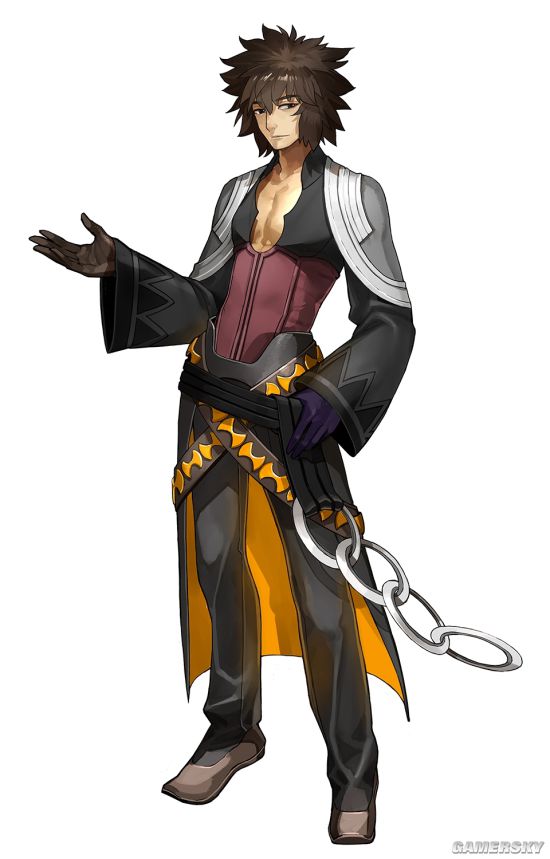 身穿红色外套的链铁之英灵。虽然是个喜欢挖苦别人个性冷酷的家伙,事实上非常会照顾人。虽身为弓兵,也很擅长近身战。虽然并非是强力的英灵,但却是个什么都能做的万事通。