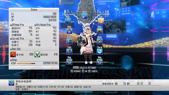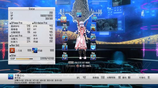 减血加命中,属性尚可,算是本人第二喜欢的手套了,实装装备。
