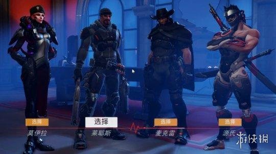 四个可选角色从左到右:莫伊拉、死神、麦克雷、源氏