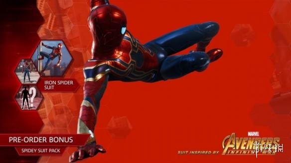 备受期待的PS4独占ACT大作《漫威蜘蛛侠(Marvel's Spider-Man)》预购奖励包括三套奖励服装,在游戏发售日公布时曾曝光过其中一套朋克风的服装,今天另一套奖励套装也已经泄露:来自于《复仇者联盟3》电影中钢铁侠为蜘蛛侠打造的战衣!